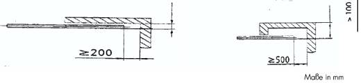 Auf Grund von systematischen Versuchen haben sich für rechteckige Durchgriffsöffnungen folgende Sicherheitsabstände als ausreichend erwiesen: