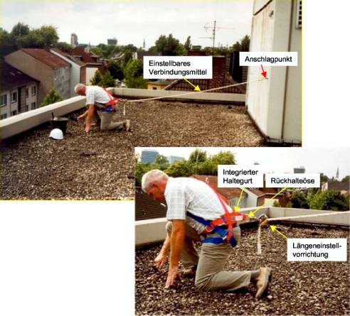 In Rückhaltesystemen dürfen nur Verbindungsmittel eingesetzt werden, mit deren maximaler Länge die nächstgelegene Absturzkante nicht erreicht werden kann.