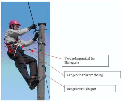 Zur Arbeitsplatzpositionierung muss ein Haltegurt mit zwei Halteösen ausgerüstet sein (siehe Bild 1).