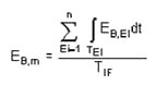 Liegt während einer Arbeitszeit eine unterbrochene oder gepulste Strahlung vor, dann ist für jeden einzelnen Strahlenzug oder Puls i die Blaulicht-Bestrahlungsstärke EB,EI nach Gleichung (24) des Abschnittes 3.6.2.2 zu bestimmen. Danach wird der Mittelwert der Blaulicht-Bestrahlungsstärke EB,m aller Strahlenzüge oder Pulse während der Expositionsdauer berechnet. Dabei gilt: