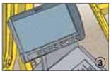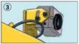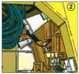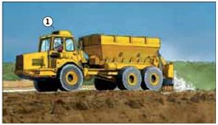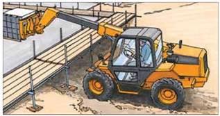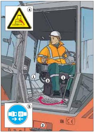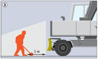 Bei Einschränkungen des Sichtfeldes und Aufenthalt von Beschäftigten im Gefahrenbereich zusätzliche Maßnahmen zur Verbesserung der Sicht, z.B. Kamera-Monitor-System einsetzen (2).