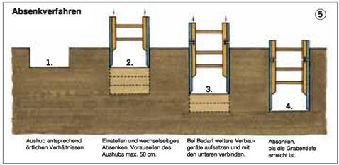 Festgelegte Schutzmaßnahmen durch- und umsetzen, z.B. Anbringen des Seitenschutzes, Einbau von Grabenverbauelementen, Bestimmen des Verantwortlichen, Benutzen der persönlichen Schutzausrüstungen.