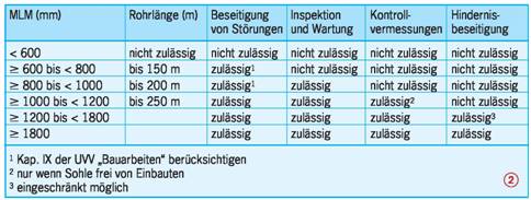 Fußwege mindestens 1,0 m breit und 2,0 m hoch vorsehen, sonst Zutrittsverbot aussprechen oder alle 50 m Schutznischen vorsehen.