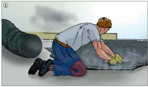 Direkten Hautkontakt mit heißem Gussasphalt durch geschlossene Kleidung und wärmebeständige Schutzhandschuhe, z.B. aus Leder, verhindern.