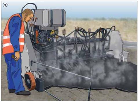 Gussasphalt vorrangig maschinell einbauen mit beheizbaren Abziehbohlen, die als Verteil- und Glättvorrichtung wirken (ab einer Einbaubreite von 1 m einsetzbar) (3)