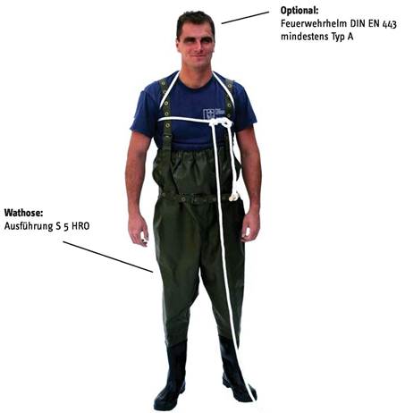 Ausrüstung: leichtes Schuhwerk und Rettungsweste, Benutzung PSa 21 bzw. 11 möglich