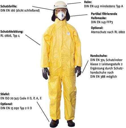 Daraus lässt sich die Art der erforderlichen Schutzausrüstung ableiten. Diese ist in folgende Gruppen aufgeteilt: