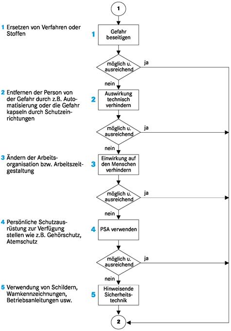 Sind für die ermittelten Gefährdungen in staatlichen oder berufsgenossenschaftlichen Vorschriften (Gesetzen, Verordnungen, Unfallverhütungsvorschriften) einzuhaltende Bedingungen (z.B. Arbeitsplatzgrenzwerte bei Gefahrstoffen) vorgegeben, so müssen diese erfüllt werden.