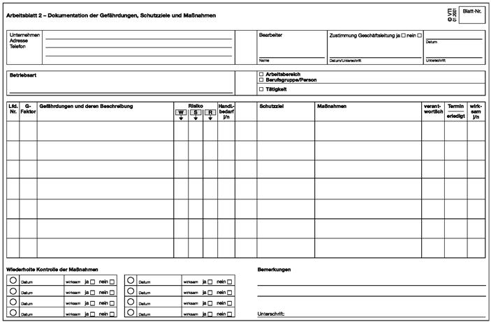 Arbeitsblatt 2 - Dokumentation der Gefährdungen, Schutzziele und Maßnahmen