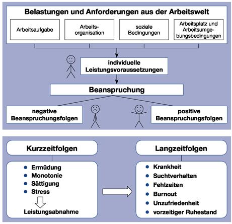 In Abhängigkeit von den individuellen Leistungsvoraussetzungen (z.B. Fähigkeiten, Fertigkeiten, Erfahrungen, Gesundheitszustand) und der gewählten Bewältigungsstrategie können somit entgegengesetzt wirkende Beanspruchungsfolgen auftreten.