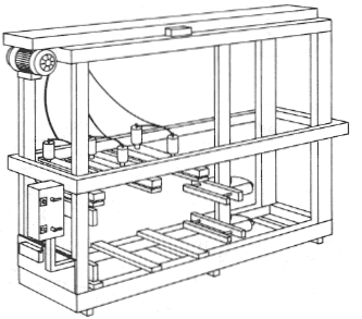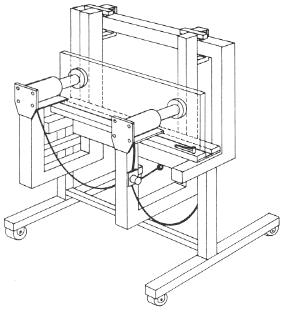 2.4 Korpuspressen im Sinne dieser Sicherheitsregeln sind Montagepressen für kastenförmige Teile wie Möbelkorpusse, bei denen der Presshub in einer oder mehreren Richtungen erfolgt. Der Anpressdruck wird von festen oder verstellbaren Gegenlagern aufgenommen (siehe Abbildung 5).