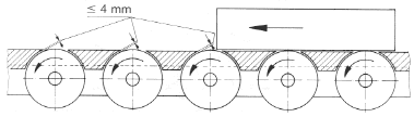 Einzugstellen zwischen Rollen von angetriebenen Rollenbahnen und anderen Teilen der Pressen sowie Scherstellen zwischen Werkstücken und Rollen müssen verdeckt oder durch Auskleidung (Füllkörper) gesichert sein (siehe Abbildung 21).