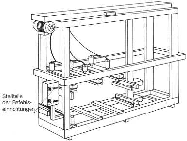 Sind die Befehlseinrichtungen nicht im elektrischen Einbauraum untergebracht, kann die Wirksamkeit der Befehlseinrichtungen zum Stillsetzen sowie der Not-Befehlseinrichtung beim Auftreten eines Fehlers z.B. durch Redundanz im Steuerstromkreis (zwei Kontaktpaare an der Befehlseinrichtung, zwei getrennt verlegte Zuleitungen, zwei Hilfsschütze, deren Kontakte in geeigneter Weise verschaltet sind), gewährleistet werden.
