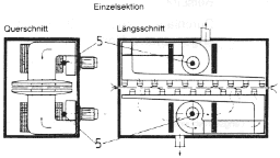 | Längsschnitt einer Einzelsektion | Querschnitt einer Einzelsektion |