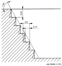 4.6.2 Abweichend von Abschnitt 4.6.1 ist bei Arbeitsgruben und Unterfluranlagen eine Treppe mit einem Neigungswinkel bis 60° zulässig, sofern diese Treppe nur als Notausstieg benutzt wird.
