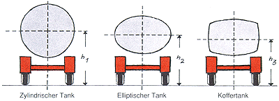 Die Fahreigenschaften eines Tankfahrzeuges sind unter anderem auch von der Schwerpunkthöhe abhängig. Es wird angestrebt, den Schwerpunkt möglichst tief zu legen. Seine Lage wird wesentlich vom Tankquerschnitt beeinflusst.