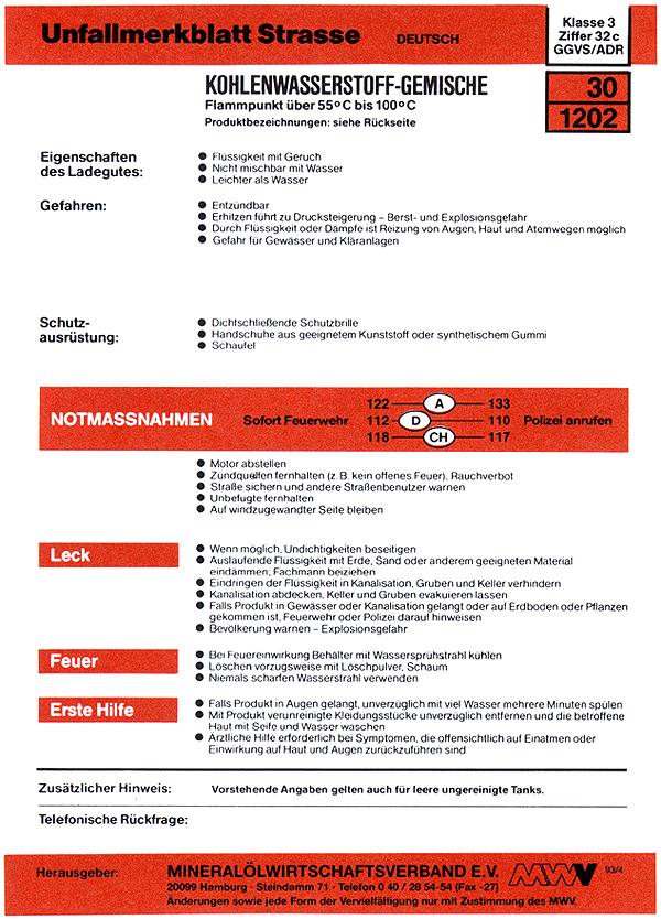 Merkblatt über den Gesundheitsschutz beim Umgang mit Vergaserkraftstoffen (ZH 1/468)