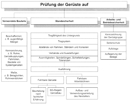 Hinweise für die Prüfung von Fahrgerüsten siehe Tabelle 7 und Anhang 2.