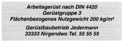 | Gerüstersteller: ... ... ... ... ... ... ... ... ... ... ... ... | |||||||