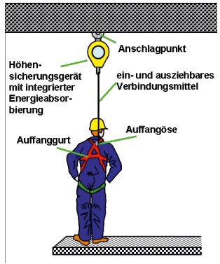 3.3 Auffangsystem mit Höhensicherungsgerät Das System besteht aus Anschlageinrichtung, Höhensicherungsgerät und Auffanggurt. Bild 5: Skizze des Auffangsystems mit Höhensicherungsgerät
