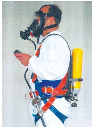 5.3.1.3 Auffangsysteme dürfen nicht miteinander kombiniert werden. Eine negative Beeinflussung der Wirkungsweise ist möglich. Z. B. können nachteilige Beeinflussungen eintreten, falls Höhensicherungsgeräte mit einem zusätzlichen Falldämpfer verwendet werden. 5.3.1.4 Auffangsysteme sind in der Regel so konzipiert, dass der Sturz und der Auffangvorgang unbeeinflusst vonstatten gehen. In der Praxis kann es jedoch vorkommen, dass die Ausrüstungen dabei auch Kantenbeanspruchungen ausgesetzt sind, bzw. die Anschlageinrichtung sich nicht über der Person, sondern z.B. in Standplatzebene angeordnet sein kann. Für diese Beanspruchungsfälle sind besonders geprüfte Komponenten auszuwählen. Mittlerweile sind Höhensicherungsgeräte, mitlaufende Auffanggeräte einschließlich beweglicher Führung und Verbindungsmittel mit Falldämpfer verfügbar, die bestimmten Beanspruchungen über eine Kante standhalten. Angaben zur Art der Kantenbeanspruchung und die zulässige Anordnung des Anschlagpunktes sind in der Gebrauchsanleitung des Herstellers enthalten. 5.3.1.5 Beim Einsatz von persönlichen Schutzausrüstungen gegen Absturz zusammen mit anderen persönlichen Schutzausrüstungen ist darauf zu achten, dass keine gegenseitige Beeinträchtigung der jeweiligen Schutzwirkung eintritt. Beispiele für Kombinationen von PSA-Arten Bild 9: Beispiel eines Auffanggurtes mit integrierter Tragevorrichtung für Druckluftflaschen