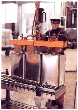 | → Bewegliche Hebeeinrichtungen zur Verfügung stellen (Vakuumheber, Fasskippvorrichtungen, siehe Merkblatt T 028) | ||