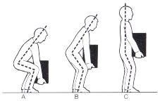 | → Auf die richtige Körperhaltung achten (z.B. Heben mit möglichst gerader Wirbelsäule, Last möglichst nah am Rumpf halten, Heben und Tragen mit verdrehtem Oberkörper vermeiden) | ||