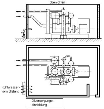 Abb. 5: Beispiel einer Abschirmungen für Sauerstoff-Kolbenverdichter nach Durchführungsanweisungen zu § 24 Abs. 3.