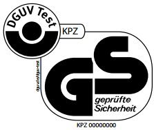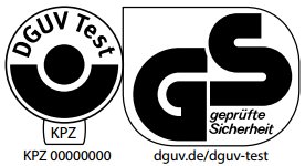 Mit dem GS-Zeichen ist das Signet DGUV Test, das Kurzzeichen der Prüf- und Zertifizierungsstelle und im Regelfall die Zertifikatsnummer zu kombinieren. Das DGUV Test-Zeichen ist mindestens mit dem Kurzzeichen der Prüf- und Zertifizierungsstelle zu versehen.
