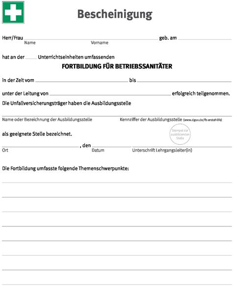 | Muster einer Bescheinigung für die Teilnahme an Fortbildungen für Betriebssanitäter |