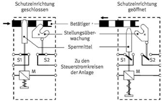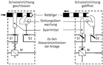 Als Sensoren werden in Verriegelungseinrichtungen sehr oft elektromechanische Positionsschalter zur Stellungsüberwachung einer beweglichen trennenden Schutzeinrichtung verwendet.