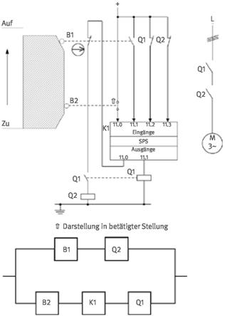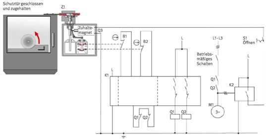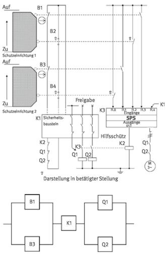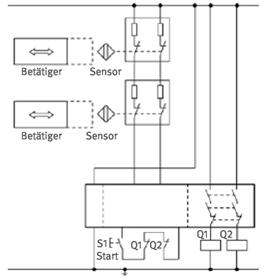 Abb. 53 Stellungsüberwachung beweglicher trennender Schutzeinrichtungen mit Blockschaltbild