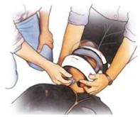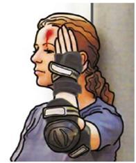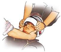 | Wenn Sie alleine an der Unfallstelle sind, gehen Sie wie folgt vor: Knien Sie oberhalb des Kopfes und ziehen Sie nach dem Öffnen des Visiers und des Kinnriemens vorsichtig den Helm nach oben ab. Achten Sie darauf, dass der Kopf der verunglückten Person nicht aufschlägt. Kontrollieren Sie anschließend die Lebenszeichen und gehen Sie wie oben beschrieben weiter vor. |