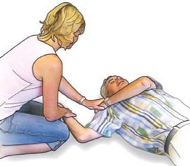 Legen Sie ihn in sicherer Entfernung von der Unglücksstelle vorsichtig ab und helfen Sie situationsgerecht. |