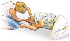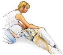 Strecken Sie die Beine und ziehen Sie die betroffene Person dicht am eigenen Körper auf Ihre Oberschenkel (3). So ziehen Sie sie an einen sicheren Ort und legen ihn dort möglichst auf einer Decke vorsichtig ab. |