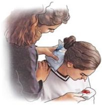 Stellen Sie vorsichtig Körperkontakt her. Halten Sie die Hand der betroffenen Person oder legen Sie Ihre Hand auf ihre Schulter. Auch das Abwischen der Stirn wird von Betroffenen meist positiv aufgenommen. |