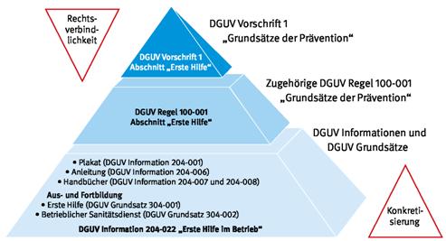 Die nachfolgende Darstellung gibt einen schematischen Überblick über die Struktur des Vorschriften- und Regelwerkes der Unfallversicherungsträger zur Ersten Hilfe im Betrieb.
