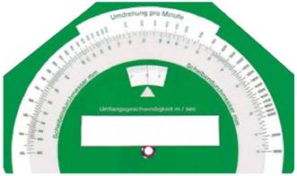 Abb. 4: Schablone Drehzahl/ Umfangsgeschwindigkeit