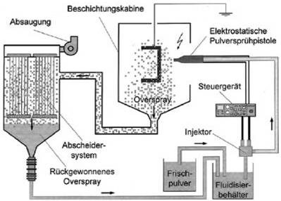 Abb. 2-1 Aufbau einer elektrostatischen Pulverbeschichtungsanlage