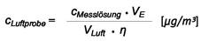 | Messbereich: | Validiert im Bereich von 0,010 µg/m3 bis 0,075 µg/m3 bezogen auf ein Probeluftvolumen von 400 l. |