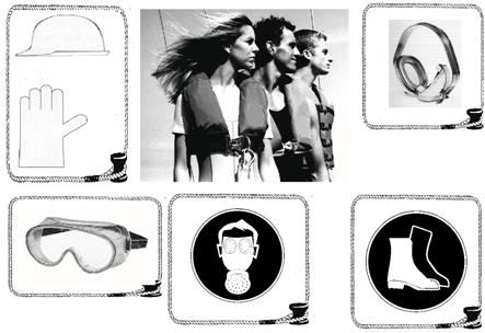 | Die Kennzeichnung jedes Schutzkleidungsteiles durch ein Piktogramm ist hilfreich bei der gezielten Auswahl. z.B. | Beispiel für einen Maschinenschutzanzug für Arbeiten an Bord |