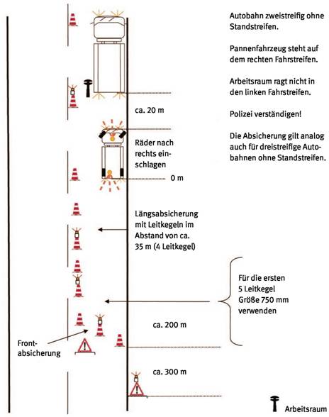 Abschleppfahrzeuge (Nr. 1 der Richtlinien) oder Bergungsfahrzeuge (Nr. 2), mit denen Einsatzarbeiten im Sinne dieser BG-Information durchgeführt werden, sind ebenfalls mit Absicherungsmaterial auszurüsten.