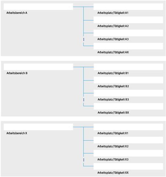 Zur systematischen Vorgehensweise ist es sinnvoll, sich an Arbeitsplätzen oder Arbeitsabläufen zu orientieren.