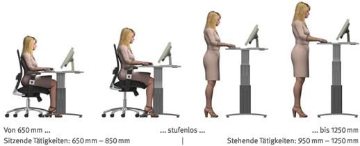 Auch wenn der überwiegende Anteil der Büroarbeit (noch) am Schreibtisch erledigt wird, nimmt der Anteil der Beschäftigten zu, die notwendigerweise einen Teil ihrer Büroarbeit im Außendienst erledigen (mobile Arbeit). Dabei ist die Büroarbeit unterwegs nur die zweitbeste Lösung. Konzentriertes Arbeiten am gut ausgestatteten Büroarbeitsplatz ist zumeist effizienter und ergonomischer.
