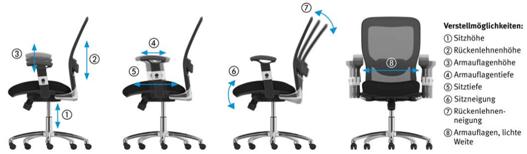 | 6 | Tischhöhe (mindestens 74 ± 2 cm, besser vollständig Höhenverstellbar) | 13 | Büroarbeitsstuhl |