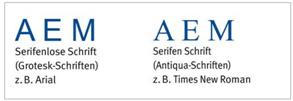 | Serifenlose Schrift | Die hier verwendete Schriftart ist serifenlos, da sie keine abschließenden Querstriche an den Buchstabenenden besitzen. Dieser Satz ist hingegen eine Serifenschrift. |