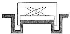 1 - An der Plattform sind Blechschürzen angebracht, die in eine Bodenöffnung abgesenkt werden. Empfindlich gegen Beschädigung und Verschmutzung.