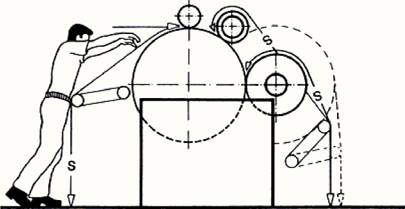 Hierzu gehören z.B. Seil- oder Bandaufführung, Druckluft- oder Vakuumaufführung, Aufführung mit Drachen an Streichmaschinen. Zum Trennen der Bahn sind z.B. geeignet: