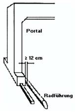 4.2.11 Die Seiten der Radführungen für Fahrzeuge müssen z.B. durch Auskleidungen geschlossen sein.