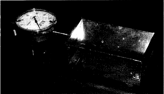 Das Extensometer besitzt eine offene V-förmige Mulde, die an einem Ende durch eine befestigte und am anderen Ende durch eine bewegliche Platte verschlossen mit einer Messeinrichtung versehen ist, die eine genaue Ablesung auf 1/100 mm erlaubt (siehe Abbildung B.5). Die Mulde ist aus Messing oder Bronze, 100 mm lang, ungefähr 60 mm breit und 25 mm tief, mit einem gewölbten Boden. Die Rückstell-Feder soll leicht und freibeweglich sein.